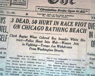 Clipping from 1919 New York World newspaper about the drowning of an African American boy on Lake Michigan. He had accidentally crossed into the “whites only” area. Collection of Lu Vickers