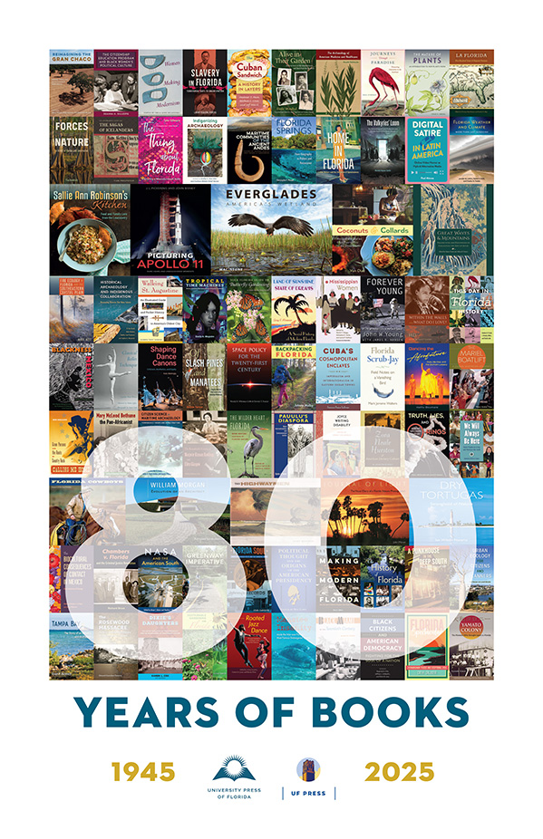 This poster features 80 books from the past and present of University Press of Florida and UF Press. The selection of books featured represents the strengths of our publishing program and the depth and breadth of research that we have published and continue to publish. We had so many excellent books to choose from and we couldn’t include them all, but we think these 80 titles give a great introduction to what we are all about. If you love our books, make a plan to give $80 for our 80th and display your copy of this poster proudly!